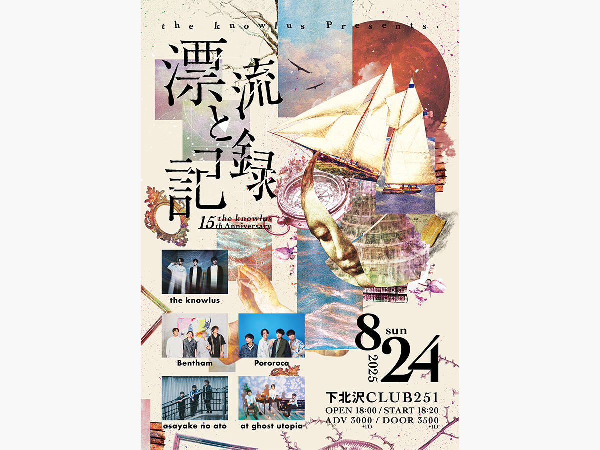 the knowlus 15th Anniversary live『漂流と記録』のフライヤー アートワークとデザインを担当しました。